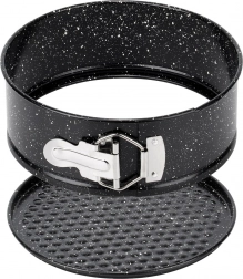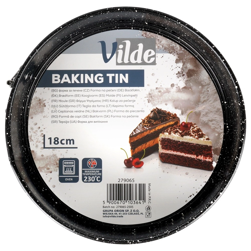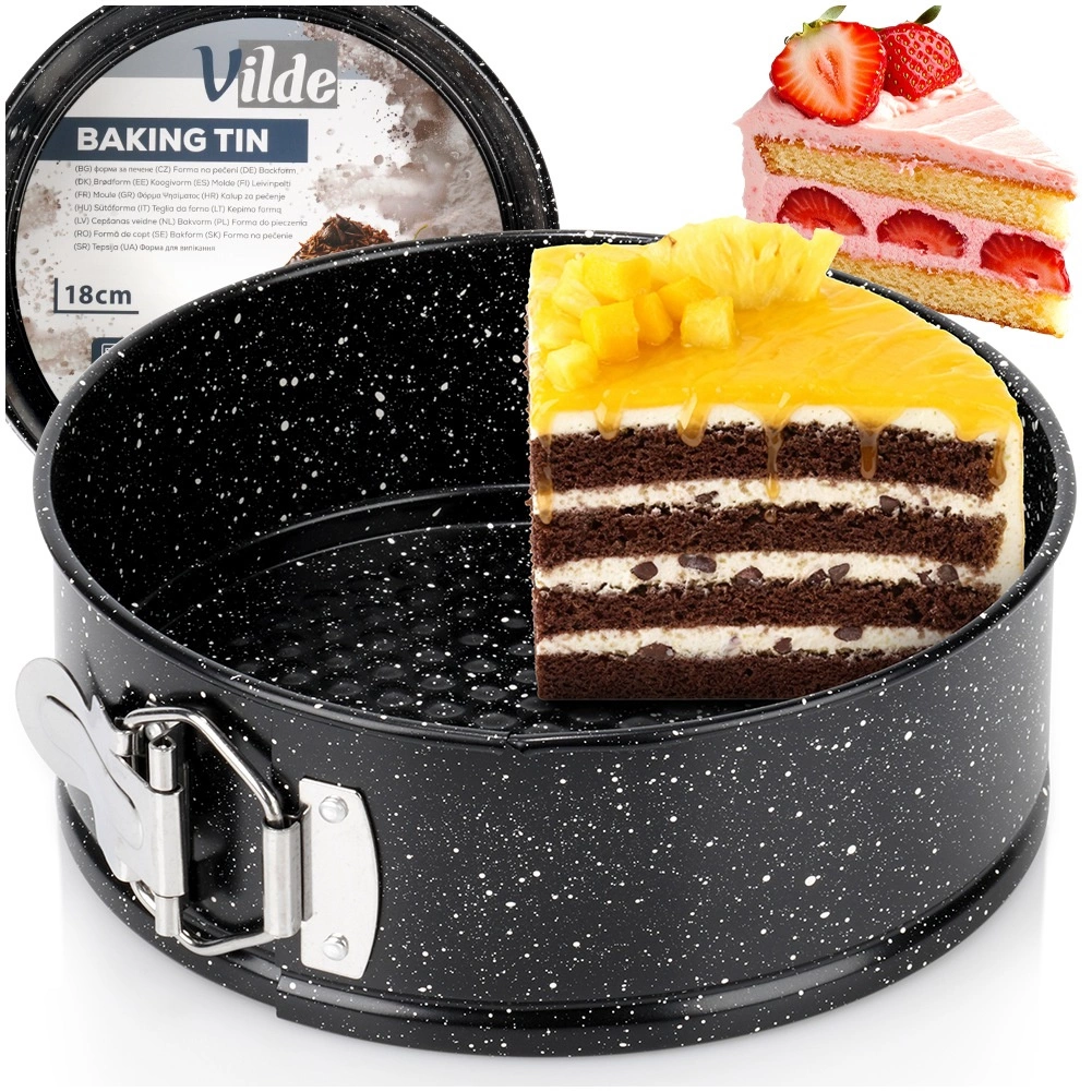 Ez a 18 cm átmérőjű, kerek, szétnyitható forma ideális tortákhoz, sajttortákhoz, piskótákhoz és sütés nélküli desszertekhez. A szétnyitható peremnek és a kivehető aljnak köszönhetően a kész piskóta könnyen kiemelhető a forma sérülése nélkül. A szénacélból készült masszív kialakítás stabilitást és hosszú élettartamot biztosít.