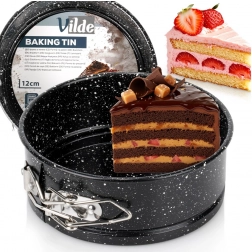 Kompakt, kerek 12 cm-es tortaforma rugós peremmel és kivehető aljjal az egyszerű desszertkiemeléshez. Szénacélból gránit tapadásmentes bevonattal a egyenletes sütésért akár 230 °C-ig. Ideális mini tortákhoz, sajttortához, piskótához és sütés nélküli desszertekhez.