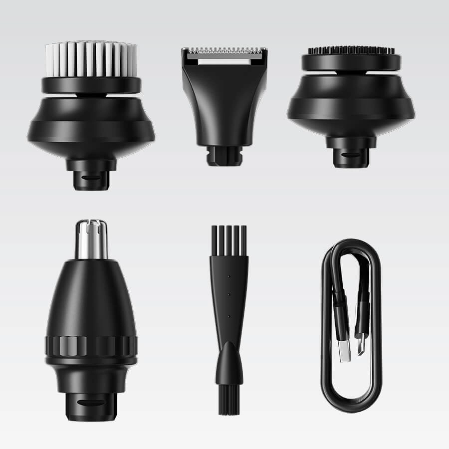 A készlet tartalma: borotvafej, orr- és fülszőr vágó, arctisztító kefe, masszázsfej és hajvágó 3 feltéttel (3/5/7 mm) a pontos hosszbeállításhoz. A két sebességfokozat növeli a kényelmet és a hatékonyságot különböző szőrtípusoknál.