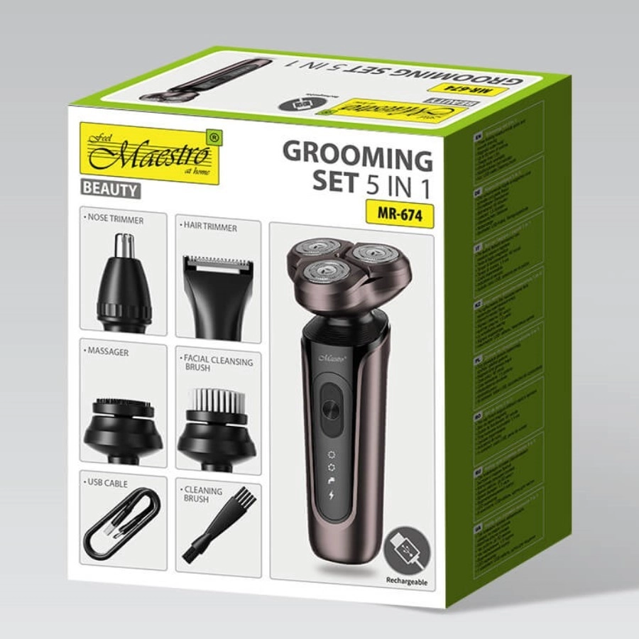 A Maestro MR‑674 teljes körű megoldás a megjelenés ápolására, amely a modern technológiát és a praktikusságot egyesíti. A 600 mAh‑s akkumulátornak, az USB‑C töltésnek és az IPX7 vízálló kialakításnak köszönhetően egy készletben oldhatja meg a sima borotválást, a trimmelést és az arcbőr ápolását. A kompakt méretek megkönnyítik a használatot otthon és útközben egyaránt.