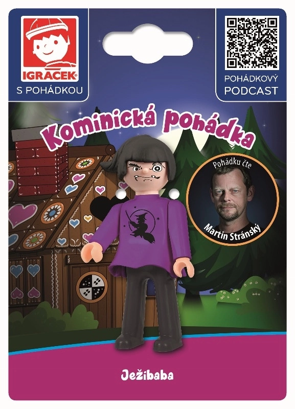 Az IGRÁČEK készlet nemcsak két közkedvelt figurát hoz el – a Boszorkányt és František kéményseprőt –, hanem egy eredeti kéményseprő mesét is, melyet Martin Stránský és Lenka Schreiberová olvas fel. Elég beolvasni a QR-kódot az eladási kártyán, és máris indulhat a kaland a mézeskalács-házikóból.