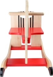 Ez a csillagmintás, játékos motívumokkal díszített fa hintaló remek választás az első hintázási élményekhez. A stabil fa szerkezet, a kényelmes, széles ülés és a praktikus lábtámaszok biztonságos és magabiztos fel- és leülést, valamint hintázást biztosítanak. A ló fején található két fa fogantyú szilárd fogást nyújt a gyerekeknek menet közben.