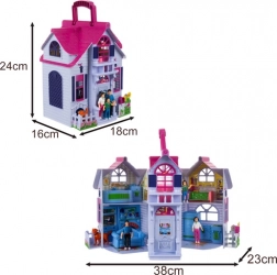 A házikó bőröndként nyílik, fogantyúja megkönnyíti a hordozást, így a gyerekek bárhol játszhatnak vele – otthon, látogatáskor vagy utazás közben.