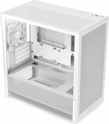 Az NZXT H3 Flow azoknak a rajongóknak készült, akik kompakt micro-ATX házat szeretnének hűtési teljesítménybeli kompromisszumok nélkül. A teljes felületű mesh panelek elöl, felül és oldalt maximalizálják a légáramlást és hatékonyan szűrik a port, míg a szellőző tápegység-alagút javítja az alulról érkező beszívást.