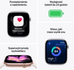 A legvékonyabb Apple Watch elegáns rózsaarany alumíniumban, amely egész nap és éjjel kényelmes viselet, így pontosan követi egészséged és alvásod. Akár 24 óra üzemidő egyetlen töltéssel, a gyors töltés pedig kb. 8 órát ad már 15 perc alatt, így szabadon edzhetsz és utazhatsz. A strapabíró Ion‑X kijelző kétszer ellenállóbb a karcolásokkal szemben, mint a Series 10, a tok pedig WR50 és IP6X minősítésű.