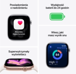 Okosóra egészséghez, sporthoz és biztonsághoz. Az Apple Watch Series 11 alumínium házzal, 42 mm-es méretben és S/M sport szíjjal elegáns dizájnt, nagyobb tartósságot és egész napos kényelmet kínál. A továbbfejlesztett akkumulátor akár 24 órányi átlagos használatot bír, és körülbelül 8 órára elegendő gyors töltést ad mindössze 15 perc alatt. A pontos GPS, a mobilkapcsolat és az Apple Pay funkció telefonnélküli szabadságot biztosít.