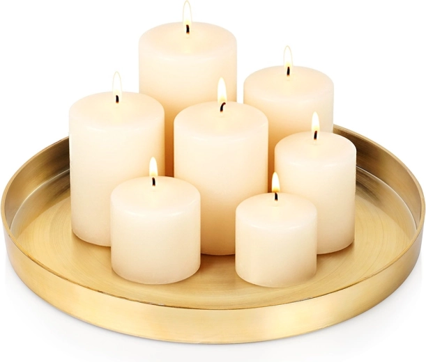 A megemelt perem a gyertyákat és a dekorációkat a helyükön tartja, és megóvja a felületeket a viasztól és a szennyeződésektől.