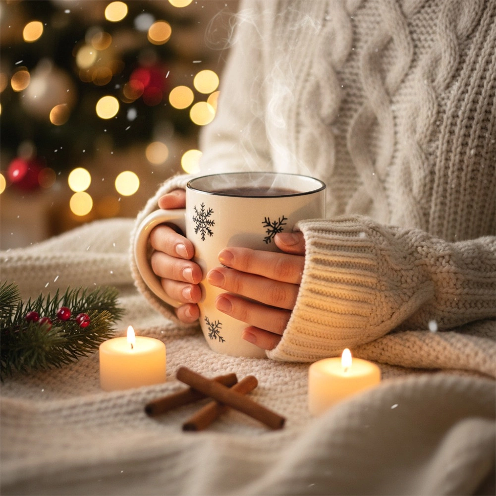 Élvezd kedvenc forró italodat a hópehely mintás kerámia bögréből. A fehér máz, a finom téli minta és a felső peremen végigfutó fekete szegély ünnepi, mégis univerzális megjelenést ad, amely bármilyen terítékhez illik.