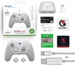 Ismerd meg a GameSir G7 Pro új generációs kontrollert – precíz, driftmentes TMR karokkal, Hall Effect ravaszokkal, 1000 Hz-es polling rate-tel és háromféle csatlakozási móddal XBOX-hoz, PC-hez, ANDROID-hoz, iOS-hez és NINTENDO SWITCH-hez. Tartalmaz minibumpereket, programozható hátsó gombokat, optikai ABXY kapcsolókat, mechanikus D-padot, négy rezgő motort és töltőállomást a csomagban.