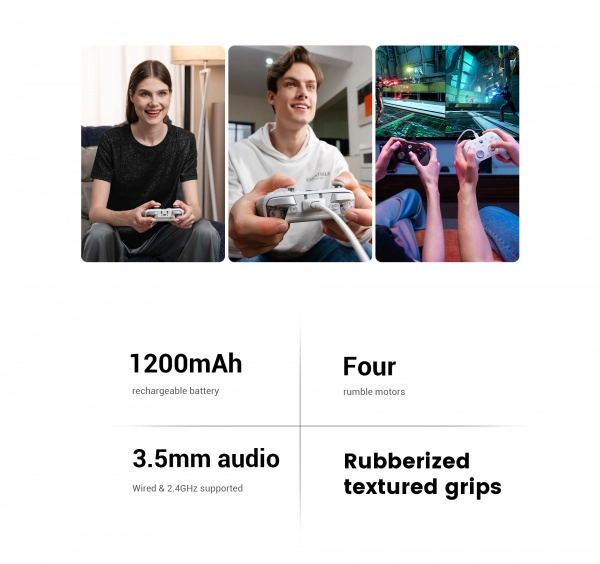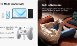 - Háromféle csatlakozás: kábel (XBOX Series X|S, XBOX One), 2.4G (PC/Steam), Bluetooth (Android, iOS, Nintendo Switch)