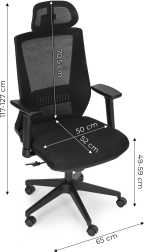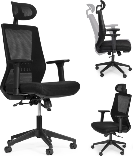 A fejtámla magassága és dőlésszöge állítható, hogy tehermentesítse a nyaki gerincet. A karfák magasság- és szögállítása javítja az ergonómiát írás és telefonálás közben.