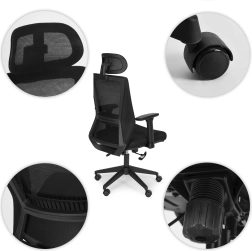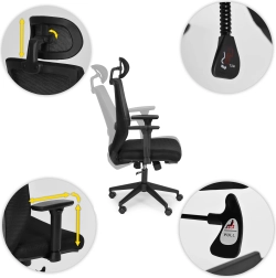 Kényelmes és egészséges megtámasztást keres a mindennapi asztali munkához? Ez az ergonomikus MODERNHOME szék modern megjelenést kombinál átgondolt funkciókkal. A hálós háttámla kiválóan szellőzik, az állítható fejtámla tehermentesíti a nyakat, a deréktámasz pedig segít a helyes gerinctartásban. A gázrugóval könnyen állítható a magasság, a reteszelhető hintamechanika pedig segít változtatni a testhelyzetet a nap folyamán.
