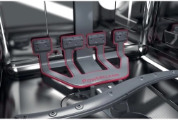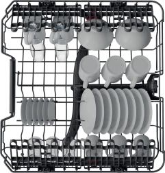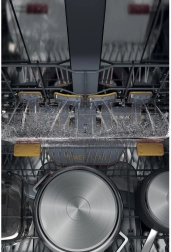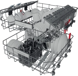 A felső és az alsó kosár lehajtható tüskékkel és magasságállítással rendelkezik. Így könnyedén elhelyezhetők a magas poharak, tepsik és nagyméretű edények is, a kapacitás csökkentése nélkül.