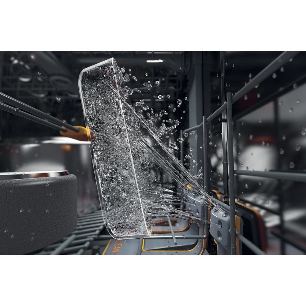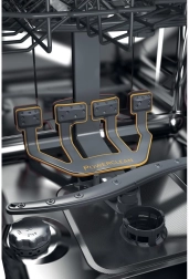 Erőteljes vízsugarak és több szórókar gondoskodik a rászáradt szennyeződések alapos eltávolításáról még a nehezen hozzáférhető helyekről is – a poharaktól a rozsdamentes edényekig.