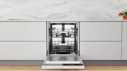 Az okos megoldások, mint például az állítható felső kosár, a lehajtható tüskék és a külön evőeszköztálca vagy kosár megkönnyítik a belső tér rendszerezését. Az ajtóélre helyezett, intuitív érintéses vezérlés és az áttekinthető jelzőfények leegyszerűsítik a programok és opciók kiválasztását, beleértve a takarékos üzemmódokat is.