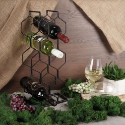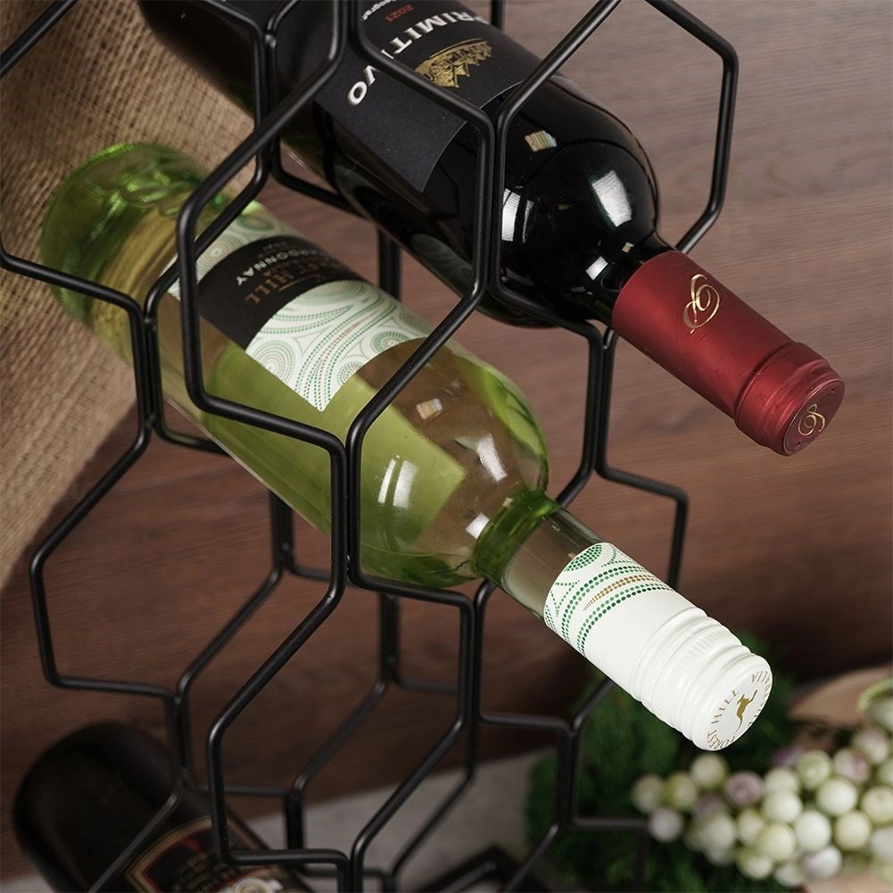 Ez a modern bortartó hatszögletű szerkezettel akár 8 palackot is befogad, és vízszintesen tárolja őket, hogy a dugók természetesen nedvesek maradjanak. A fekete, minimalista dizájn könnyen illeszkedik a különböző enteriőr stílusokhoz – a modern konyhától a házi bárig.