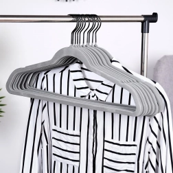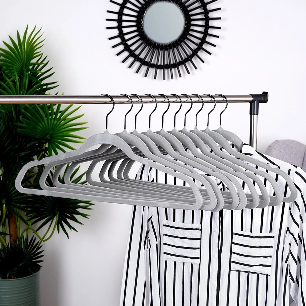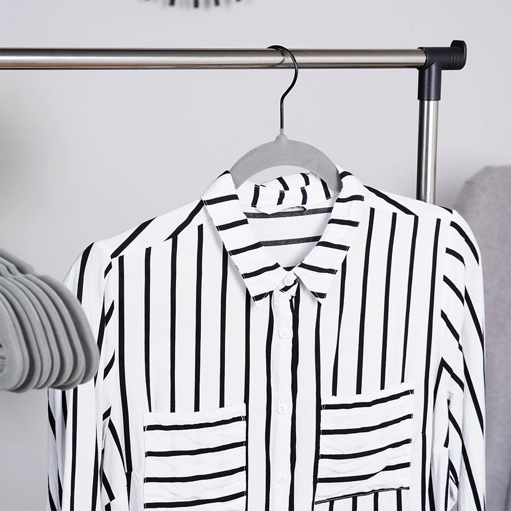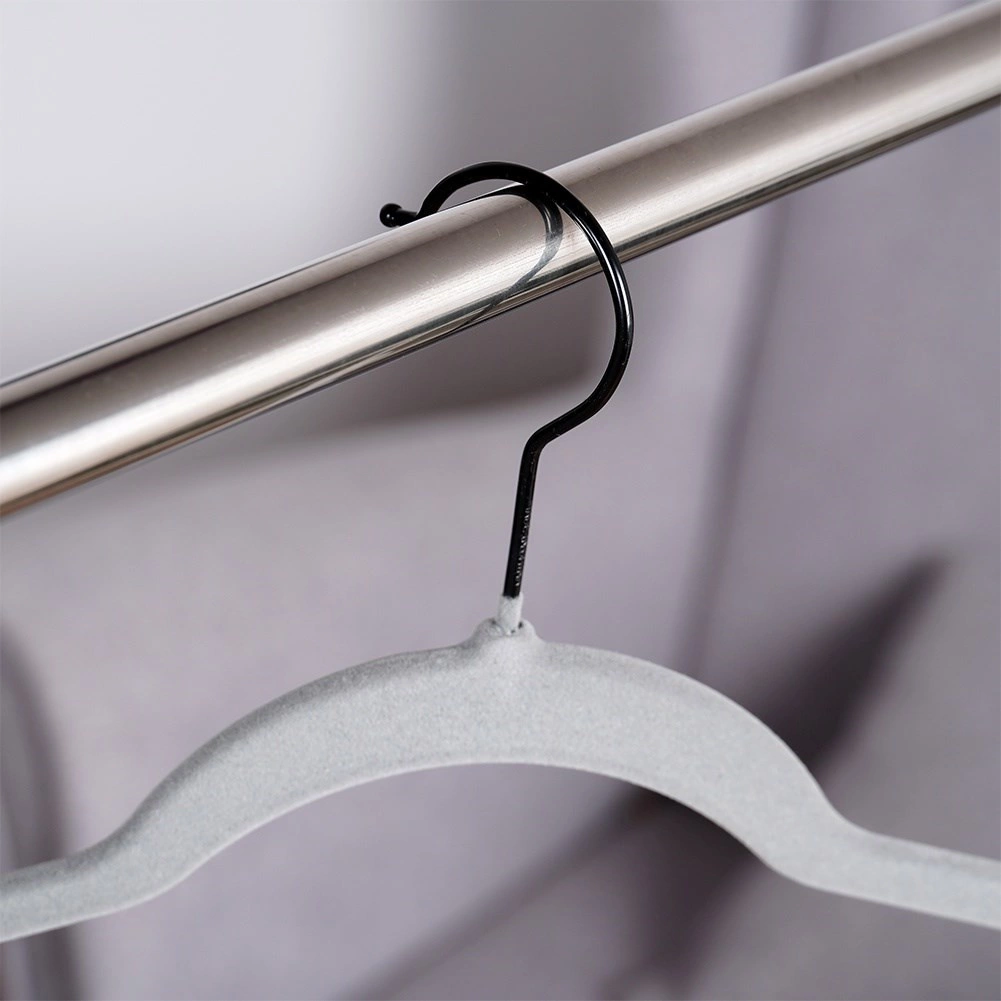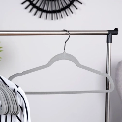 Tartsa gardróbját tökéletesen átláthatóan. A vékony fogasprofil helyet spórol, a bársonyos felület védi az anyagokat és megakadályozza a ruhák lecsúszását. A forgatható kampó megkönnyíti a felakasztást bármilyen irányban – ideális otthonra és ruházati üzletekbe is.
