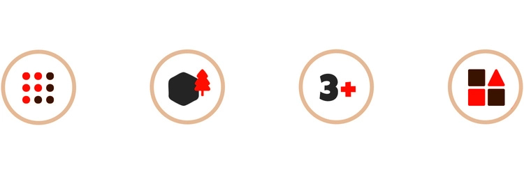 - Játékos tanulás: formák és színek felismerése, logikus gondolkodás és szociális készségek fejlesztése.