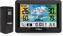 Modern otthoni időjárás-állomás nagy, jól áttekinthető színes kijelzővel és vezeték nélküli kültéri érzékelővel akár 60 m hatótávval. Kínál automatikus DCF időszinkront, hőmérséklet- és páratartalom-mérést beltéren és kültéren, barometrikus nyomást trendjelzéssel, Holdfázisokat, valamint praktikus ébresztőt és szundi funkciót.