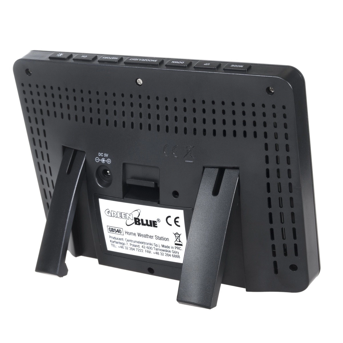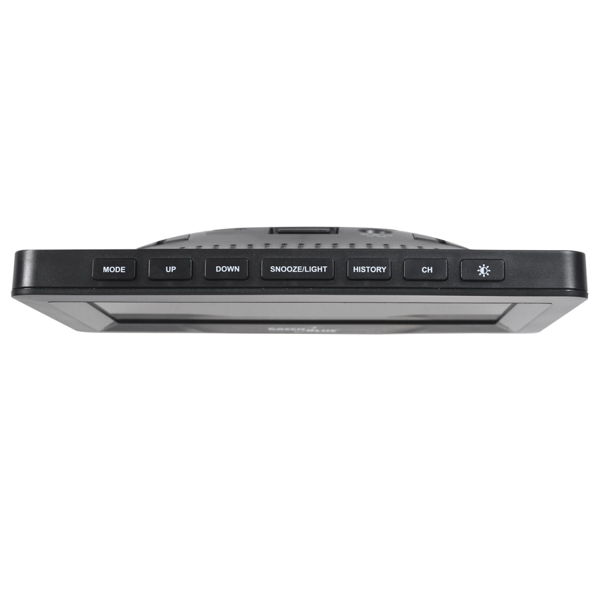 MODE, UP, DOWN, SNOOZE/LIGHT, HISTORY, CH gombok, fényerő-beállítás