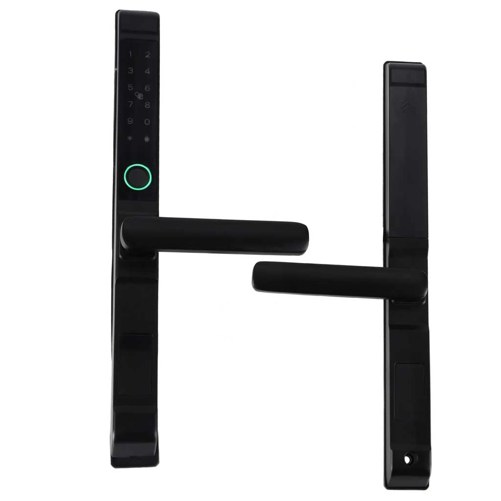 Modern okos ajtózár érintéses billentyűzettel, ujjlenyomat-olvasóval és MIFARE kártya támogatással, amely kulcs nélküli belépést, mobilalkalmazásos vezérlést és Wi‑Fi/Bluetooth csatlakozást kínál. A többféle nyitási módnak, a téves kód utáni riasztásnak és a jelszó elé/mögé írható véletlenszámok funkciónak köszönhetően magas szintű biztonságot nyújt bejárati és beltéri ajtókhoz egyaránt.