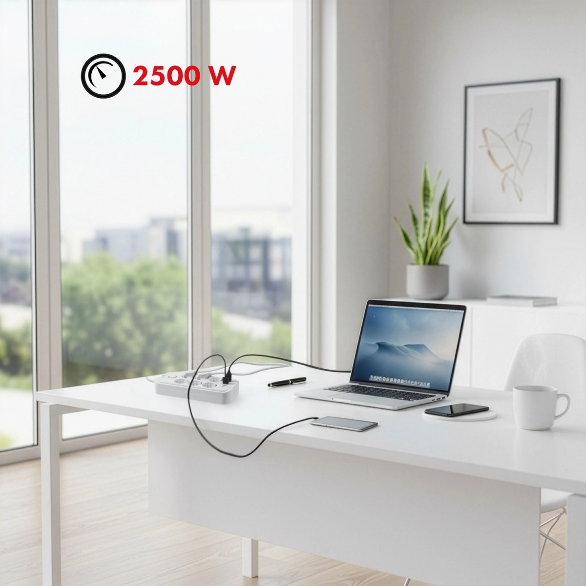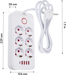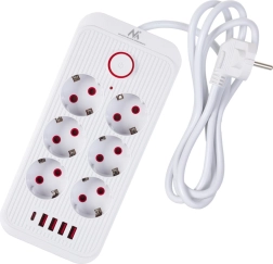 Univerzális hosszabbító elosztó 6 aljzattal és 5 USB porttal (4× USB‑A, 1× USB‑C) több eszköz egyidejű táplálásához és töltéséhez. 2500 W teljesítményt biztosít, támogatja a 110–240 V / 50–60 Hz értékeket, és masszív kialakításának köszönhetően ideális irodába, otthonra és a gamer sarokba is.