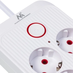 Az integrált, visszajelzővel ellátott gomb egyetlen nyomással ki- vagy bekapcsolja az összes csatlakoztatott eszközt. A gyermekvédelem megóv a véletlen érintéstől.