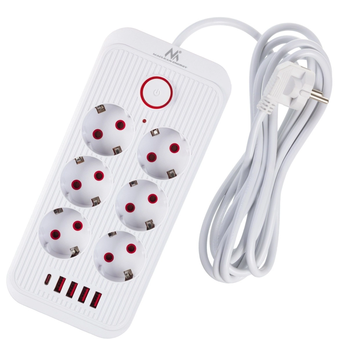 Ez a modern tápcsík bővíti az elérhető aljzatok számát, és kiváltja a különálló töltőket. A hat Schuko aljzatot öt USB port egészíti ki, ebből 4× USB‑A és 1× USB‑C, így kényelmesen tölthető telefon, tablet, fejhallgató és egyéb kiegészítők, kábelrengeteg nélkül.