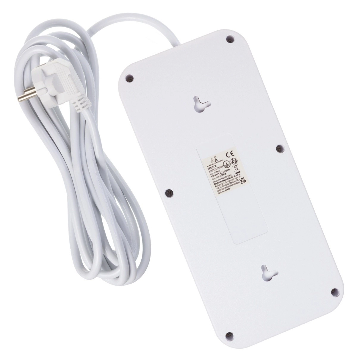 Túlfeszültségvédett hosszabbító elosztó 6 aljzattal, 4× USB‑A és 1× USB‑C, 2500 W, fehér
