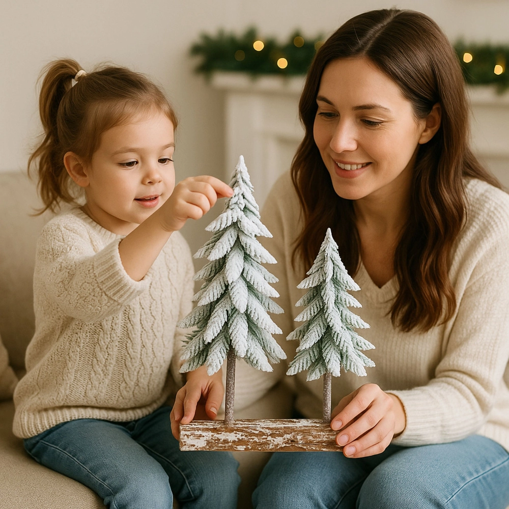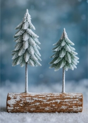 Vigyen téli hangulatot az otthonába ezzel az elegáns dekorációval – két havas mini fenyővel egy természetes fa alaplapon. A tűlevelek élethű textúrája és a finom fehér flockolás autentikus téli megjelenést kölcsönöz. Ideális asztalra, komódra vagy polcra, mint stílusos karácsonyi dekoráció rusztikus hangulatban.