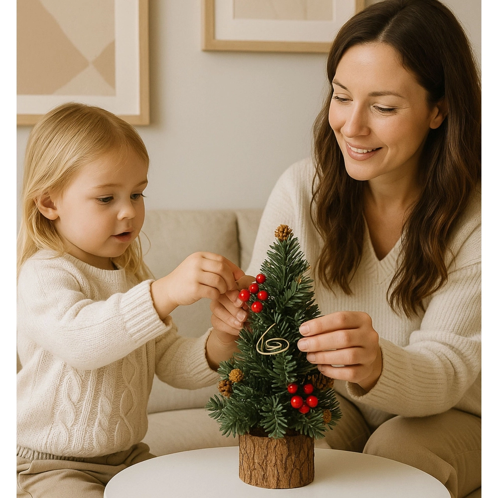 A kis asztali fa ideális polcokra, asztalokra vagy recepcióra, és azonnal ünnepi hangulatot teremt.