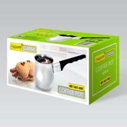 Fedezze fel a kávékészítés autentikus módját a 600 ml-es Maestro dzsezvával. Minőségi rozsdamentes acélból készült, kiváló hővezetést és hosszú élettartamot kínál. A nem melegedő, ergonomikus nyélnek köszönhetően a kiöntés biztonságos és kényelmes. Alkalmas minden típusú tűzhelyhez, beleértve az indukciósat is.