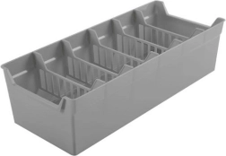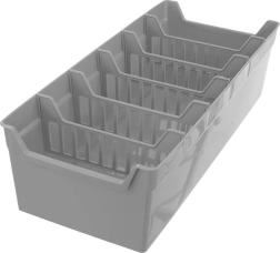 A minőségi szürke műanyag erős, mégis könnyű. A nyitott válaszfalkialakítás áttekinthetőséget és jó szellőzést biztosít.
