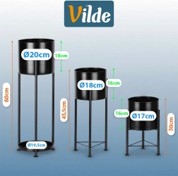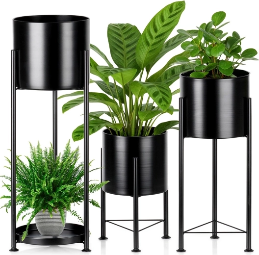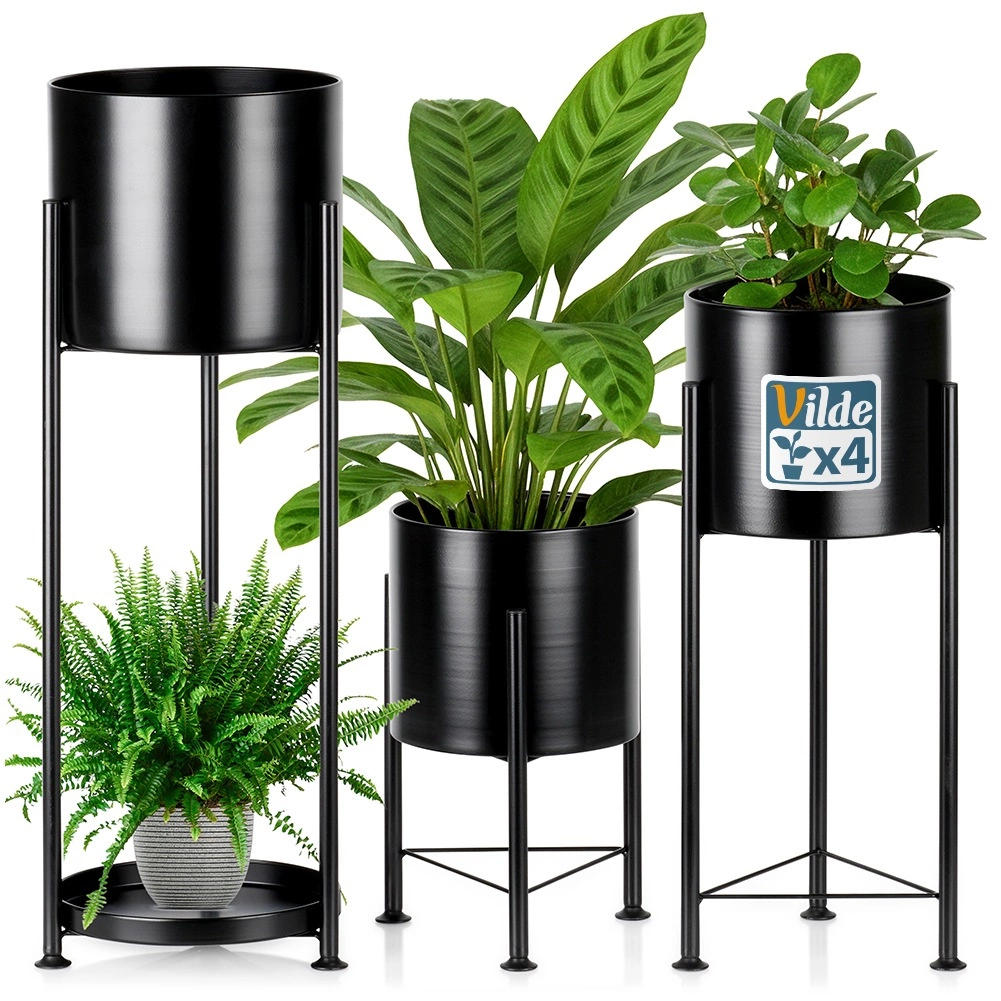 A különböző magasságoknak köszönhetően harmonikus kompozíciókat hozhat létre, javítva a fényhez jutást és elősegítve a növények egészséges növekedését. A tartós fém szerkezet és az átgondolt talp kiváló stabilitást biztosít. Az időtlen fekete szín egyaránt illik klasszikus enteriőrökhöz és ipari loft stílushoz.