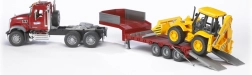 Bruder MACK teherautó pótkocsival és JCB 4CX rakodóval 1:16