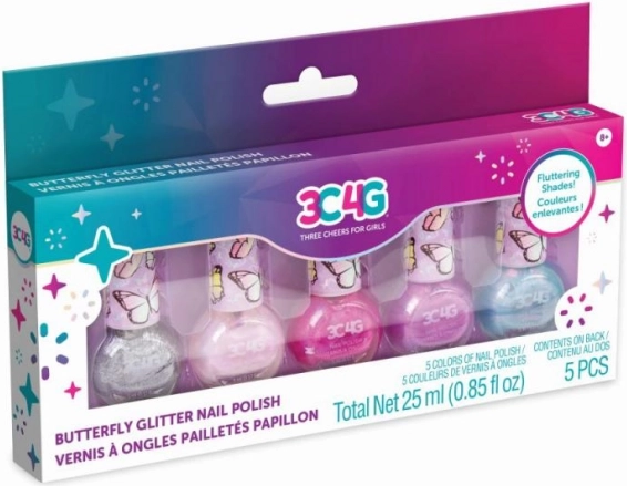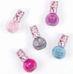 A körömlakk készlet kislányoknak tökéletes választás a kis parádások számára, akik szeretnek szépítkezni. Ez a lenyűgöző készlet 5 különböző színű körömlakkot tartalmaz, melyek mindegyike 5 ml-es kiszerelésben érkezik. A szett különlegessége, hogy a lakkok közül 3 darab csillámokat tartalmaz, amelyek gyönyörű pillangó formájúak. **Ideális választás 8 éves kortól.**