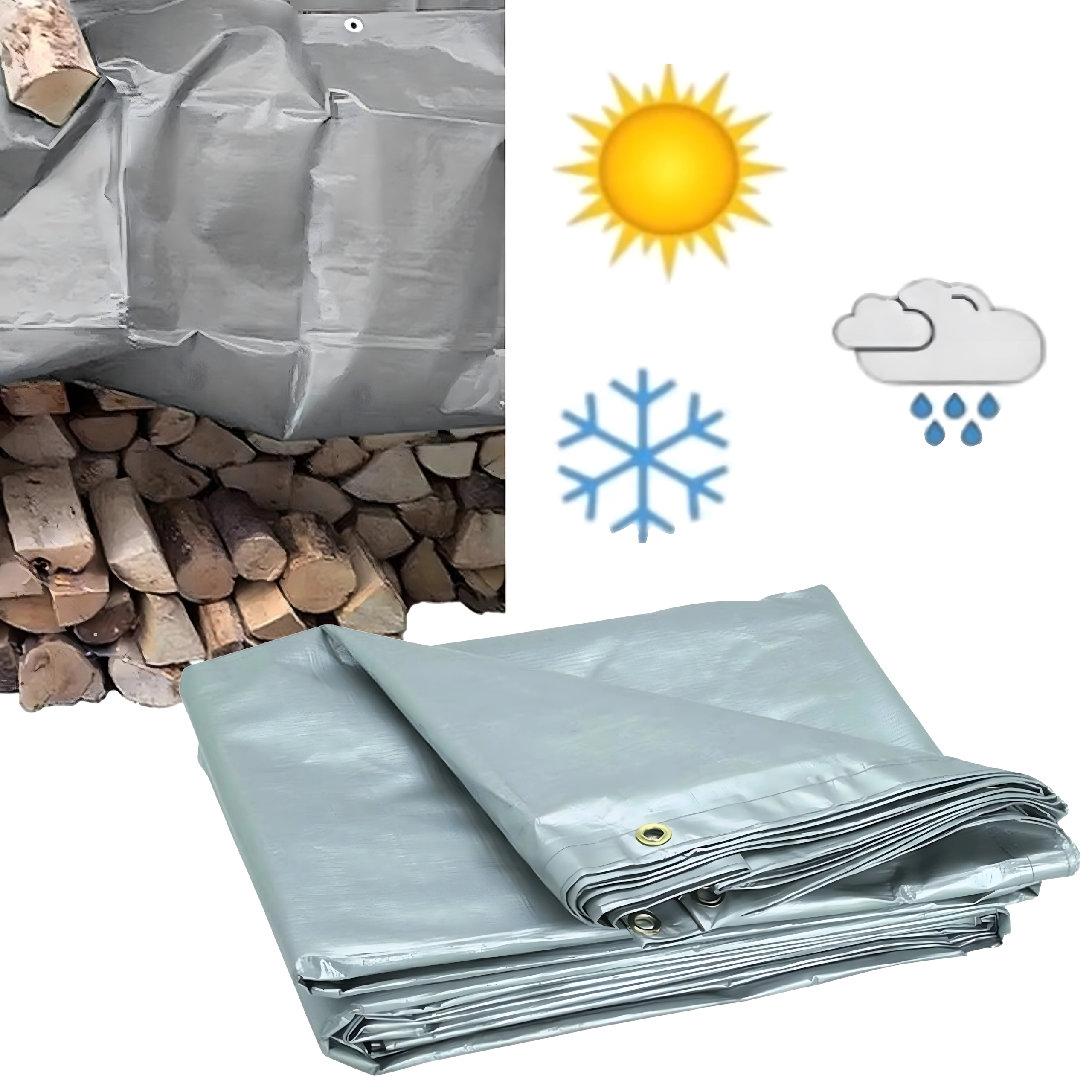 Védi a tűzifát, bútort és készleteket esőtől, hótól és napsütéstől. A megerősített szélek és a ringlik erős rögzítést tesznek lehetővé.
