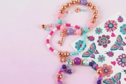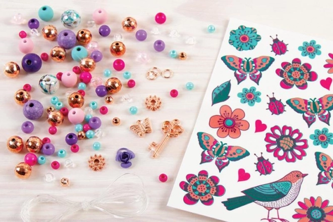 Fejleszd a kreativitásod, és tervezd meg saját virágos karkötőidet, amelyeket ideiglenes tetoválásokkal hangolhatsz össze. A színes gyöngyöknek, medáloknak és az egyszerű felfűzésnek köszönhetően pillanatok alatt olyan ékszerek készülnek, amelyek minden kis parádést megörvendeztetnek.