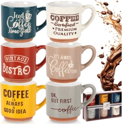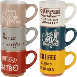 - 6 darabos készlet – különböző színű csészék dekoratív feliratokkal