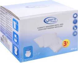 Tartsa egészségesen az otthoni klímát a 3 darab szemcsés utántöltőt tartalmazó készlettel páramentesítőkhöz. Minden egyes, 400 g-os kalcium-klorid alapú utántöltő hatékonyan megköti a felesleges nedvességet, és segít megóvni a belső tereket a penész, gombák és kellemetlen szagok kialakulásától. Illatmentes összetétele diszkrét működést biztosít bármely helyiségben.