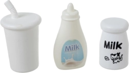 - Kenyérpirító, 2× pirítós, mikrohullámú sütő, mixer tálkával, 2× tányér, 3× evőeszköz (kanál, villa, kés), ital pohárban, ital palackban, gyümölcslé palack, joghurt, ketchup, szósz, lekvár, tojás, 4× keksz, kifli/croissant, csirke, fánk, gofri; használati útmutató, színes csomagolás