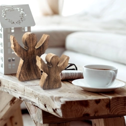 Ez az elegáns angyalfigura minőségi mangófából készült természetes árnyalatban. A minimalista sziluett kitárt szárnyakkal mutatós a polcon, komódon és az ünnepi asztalon is. Időtálló megjelenésének köszönhetően ideális a téli és karácsonyi időszakra, de egész évben díszíti az otthont.