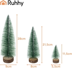 Varázsolj ünnepi hangulatot otthonodba a három darabból álló, bájos RUHHY mini fenyőfa szettel. Valódi hatású havas tűlevelek, stabil fa törzs, és ideális asztalra, komódra és DIY dekorációkhoz. A különböző magasságok látványos elrendezést tesznek lehetővé, a könnyű, tartós kialakítás pedig hosszú élettartamot biztosít.