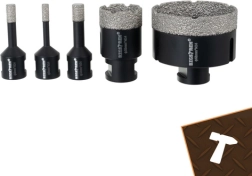 Az öt leggyakrabban használt átmérő (6/8/10/35/68 mm) lefedi a szerelési és burkolási munkákat. A mellékelt adapterrel fúrógéppel is használható.