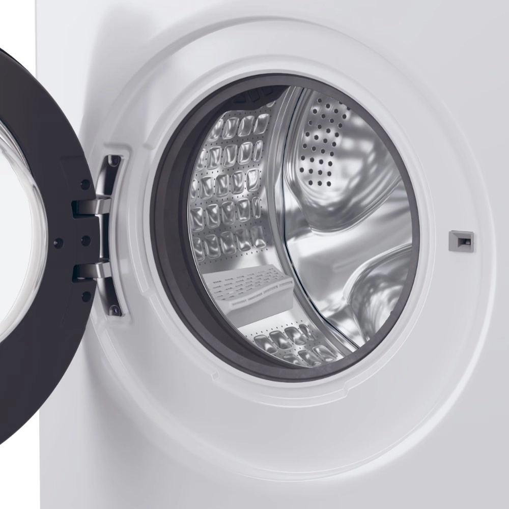 A praktikus üvegablaknak köszönhetően mindig áttekintést kap a mosás menetéről. A csendes működés és a több takarékos üzemmód kényelmet visz minden háztartásba. Az elegáns fehér kivitel fekete ajtógyűrűvel könnyedén illeszkedik a modern fürdőszobába vagy háztartási helyiségbe.