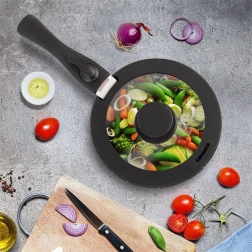 Rugalmas szilikon pereme biztonságosan illeszkedik a 16 cm átmérőjű edényekhez, védi az edény peremét, stabilitást biztosít, csendes használatot és kényelmes kezelést nyújt.