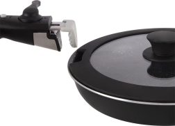 Az oldalsó kivágás megkönnyíti a használatot levehető nyelű serpenyőkön és lábasokon. Sütőben is használható 220 °C-ig.