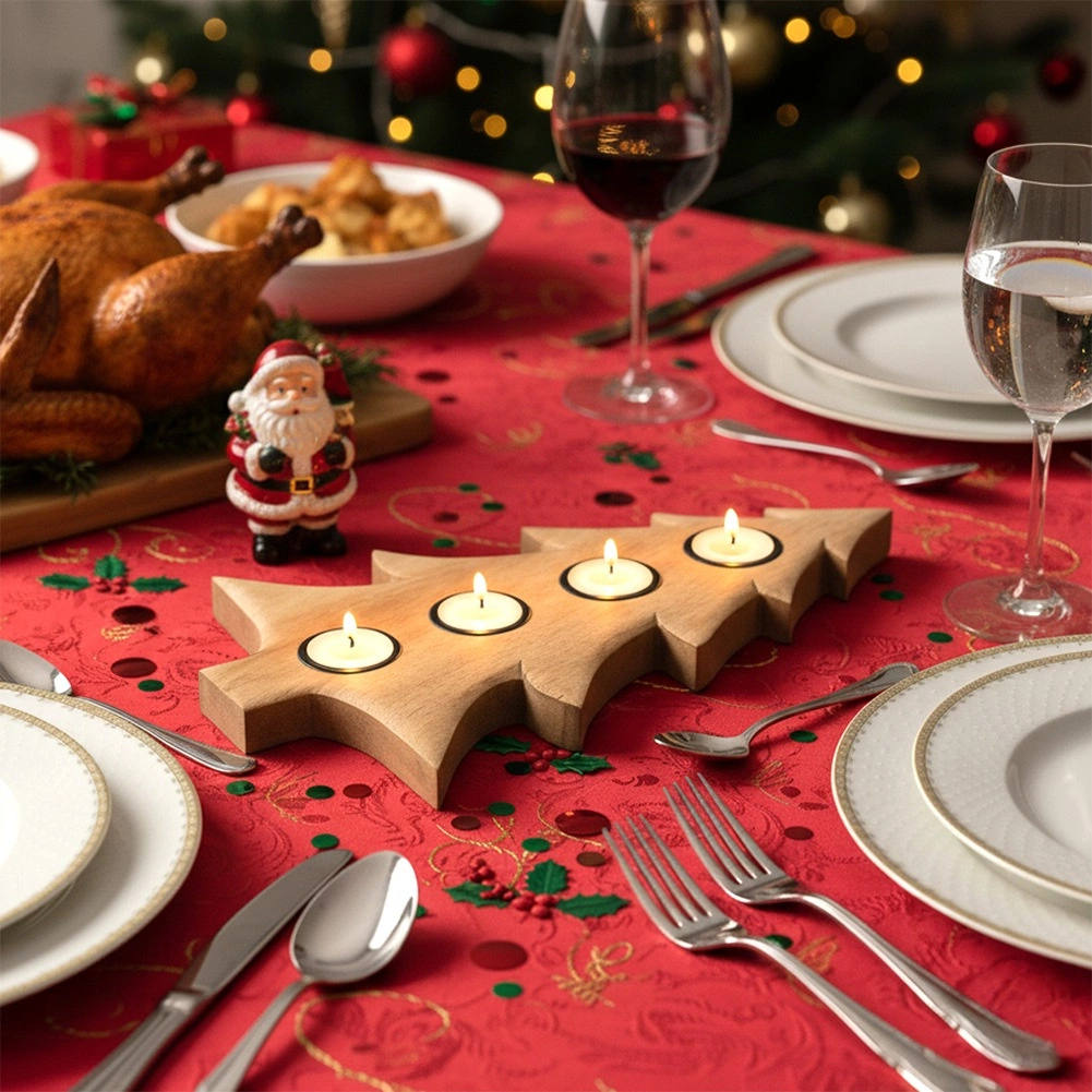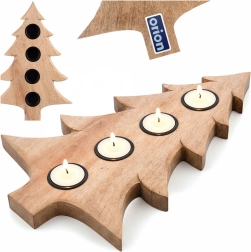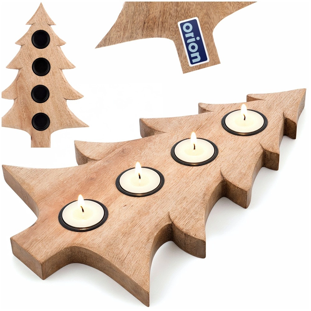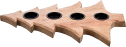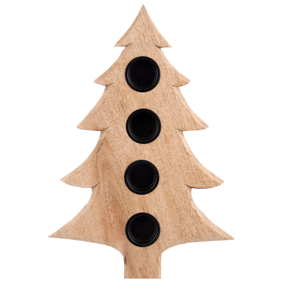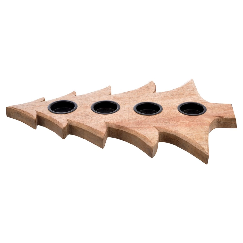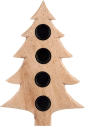 Stílusos, karácsonyfa alakú fa gyertyatartó, amely 4 db tealight gyertyát fogad 4 cm átmérőig. Természetes mangófából készült, fém betétekkel a gyertyák biztonságos elhelyezéséhez, stabil használatra asztalon vagy polcon. Remek választás adventi gyertyatartóként és egész szezonban modern vagy klasszikus enteriőrök díszeként.