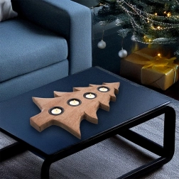 Teremtsen otthonában meghitt atmoszférát a karácsonyfa alakú fa gyertyatartóval. A mangófa és a fekete fém tálkák kombinációja elegáns megjelenést kölcsönöz a dekorációnak, egyúttal biztonságos használatot nyújt. A 40 × 27,5 × 2,5 cm-es méretnek köszönhetően az asztalon, a komódon vagy az ablakpárkányon is elhelyezhető.