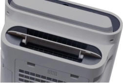A SHARP UA-HD50E-L nagy teljesítményű levegőtisztító párásítással, amely gondoskodik az egészséges beltéri klímáról. Az egyedi Plasmacluster ionok a 3 lépcsős szűréssel (előszűrő, aktívszén szűrő, HEPA) kombinálva hatékonyan csökkentik a szagokat, vírusokat és allergéneket, és javítják a helyiség levegőminőségét. A döntött, 20°-os kifúvás segít a port a padlóról a szűrőrendszer felé sodorni.